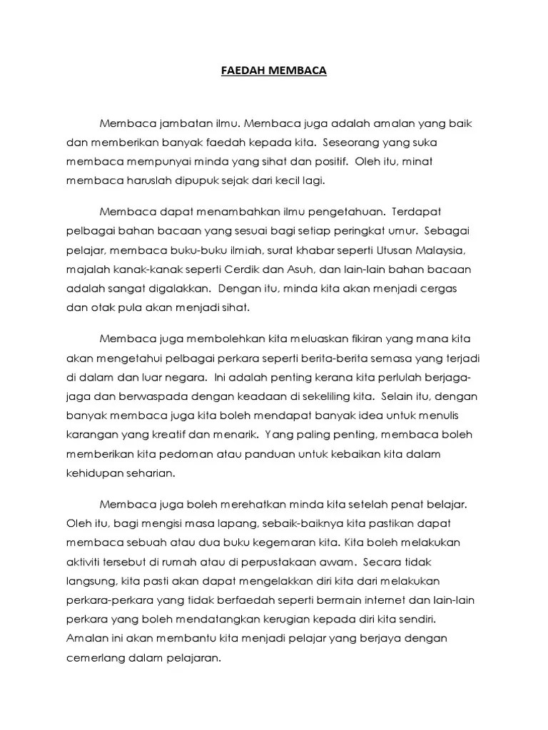 Karangan Tingkatan 1 Faedah Membaca - Faedah Membaca Surat Khabar Letter 7saudara Com. Mereka yang mempunyai tabiat ini dapat memperoleh banyak kelebihan dan manfaat. Minat membaca merupakan amalan yang berfaedah kepada masyarakat terutamanya remaja. Membaca merupakan suatu amalan yang mulia. Contoh karangan budaya membaca penting dalam kehidupan seharian. Kita dapat mempelajari kosa kata yang baharu semasa membaca.